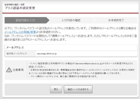 常時確認可能なメールアドレスをお持ちのお客さまは、よりセキュリティの高いプラス認証【ワンタイムパスワード】がお勧めです。